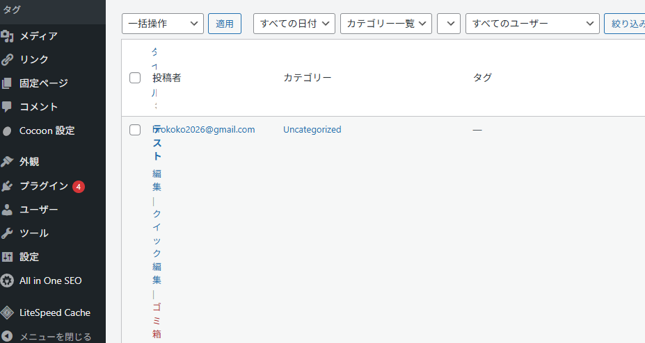 WordPressで記事を書こうと「投稿一覧」を開くと画面がこんな事になっている。